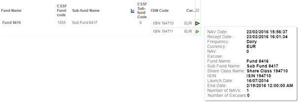 - Excuse (an excuse was set for that day meaning that Fundsquare is not expecting any NAV for this day),