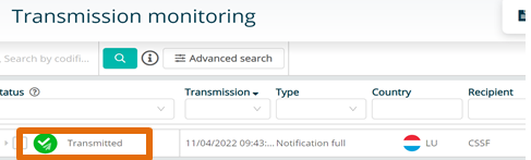 3.1. – The first feedback is «NOTFBR»: if accepted the label will be «Sent to CSSF», if rejected «Rejected by CSSF». 3.2. – The second feedback is «NOTFDB»: if accepted the label will be «CSSF Compliant», if rejected «Rejected by CSSF». These statuses will replace the previous status «Sent to CSSF». 3.3. – The third feedback is «NOTFBH»: if accepted the label will be «Accepted by Host», if rejected «Rejected by Host». These statuses will replace the previous status «CSSF Compliant».