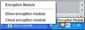 If you need to end the process, right click on the icon in the taskbar and select “Close encryption module” :